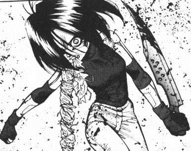 ![]() Alita with the B Damascus Blade from volume 6 of the Gunnm Complete Edition. | |